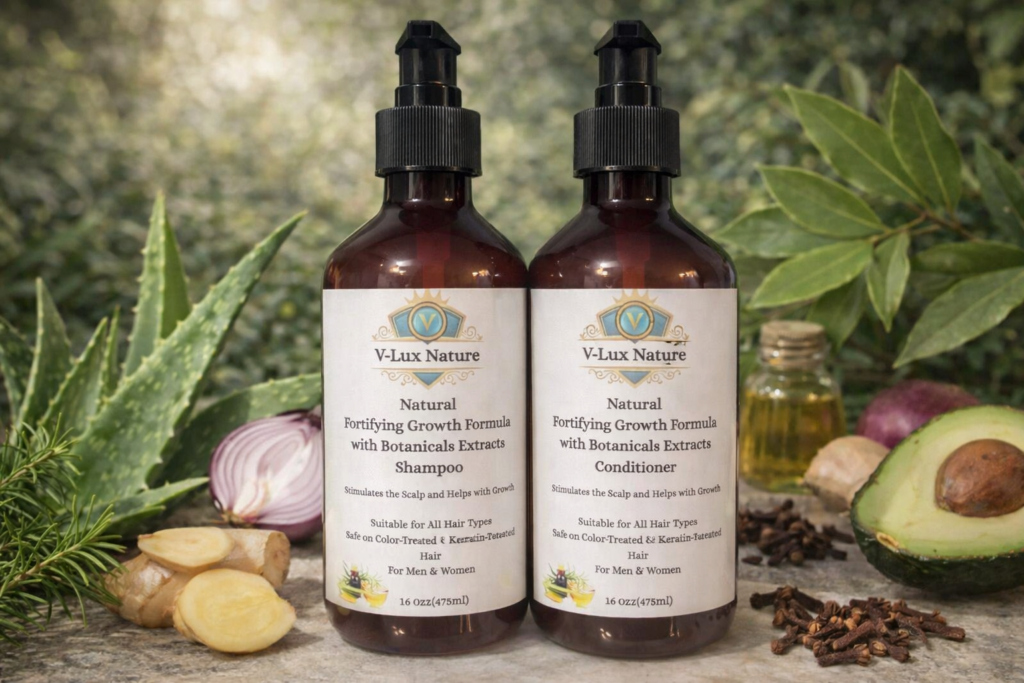 Every V-Lux Nature product category is thoughtfully formulated to support scalp balance, hair strength, and long-term wellness — using carefully selected botanical ingredients and a scalp-first approach.